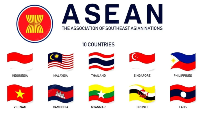 বর্তমানে আসিয়ানের সদস্য দেশ সংখ্যা ১০—ব্রুনাই, কম্বোডিয়া, ইন্দোনেশিয়া, লাওস, মালয়েশিয়া, মিয়ানমার, ফিলিপাইন, সিঙ্গাপুর, থাইল্যান্ড ও ভিয়েতনাম।