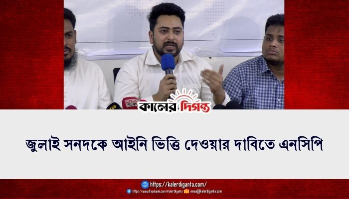 জাতীয় নাগরিক পার্টি (এনসিপি) জুলাই সনদের আইনি ভিত্তি নিশ্চিত করে দ্রুত গণপরিষদ ও আইনসভা নির্বাচনের আয়োজনের পক্ষে মত দিয়েছে। দলটির আহ্বায়ক নাহিদ ইসলাম মনে করেন, এই ভিত্তি প্রতিষ্ঠা যত দ্রুত সম্ভব করা গেলে, নির্বাচন তত দ্রুত আয়োজন করা যাবে।