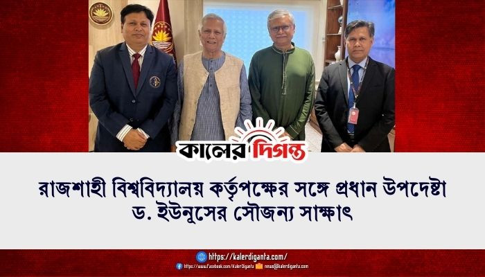 রাজশাহী বিশ্ববিদ্যালয়ের (রাবি) উপাচার্য প্রফেসর সালেহ্ হাসান নকীব ও উপ-উপাচার্যরা প্রধান উপদেষ্টা ড. মুহাম্মদ ইউনূসের সঙ্গে সৌজন্য সাক্ষাৎ ও মতবিনিময় করেছেন। বৃহস্পতিবার (২৮ আগস্ট) দুপুরে প্রধান উপদেষ্টার কার্যালয়ে অনুষ্ঠিত এ সাক্ষাতে বিশ্ববিদ্যালয়ের শিক্ষা, গবেষণা এবং সামগ্রিক কর্মকাণ্ড নিয়ে আলোচনা হয়।