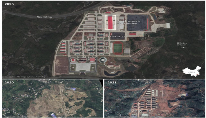 চীন তার পূর্ব উপকূলে দ্রুত ক্ষেপণাস্ত্র ঘাঁটি সম্প্রসারণ করছে। স্যাটেলাইট চিত্রে দেখা গেছে নতুন ঘাঁটি নির্মিত হয়েছে এবং পুরনো ঘাঁটিতে আধুনিক ক্ষেপণাস্ত্র যুক্ত করা হয়েছে। এর মধ্যে রয়েছে DF-17 হাইপারসনিক মিসাইল এবং DF-26 “Guam Express”, যা দূরের মার্কিন ঘাঁটিতে আঘাত হানতে সক্ষম।
