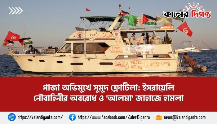 এর আগে ইসরায়েলের একটি যুদ্ধজাহাজ আগ্রাসীভাবে কয়েক মিনিট ধরে ফ্লোটিলার অগ্রবর্তী জাহাজ ‘আলমা’কে ঘিরে রাখে। এতে নেভিগেশন ও যোগাযোগব্যবস্থা হঠাৎ বন্ধ হয়ে যায়। ‘আলমা’র যাত্রী ব্রাজিলের নাগরিক থিয়াগো আভিলা জানিয়েছেন, এই আক্রমণে ক্যামেরা, সরাসরি সম্প্রচারসহ সব যন্ত্রপাতি বিকল হয়ে পড়ে।
