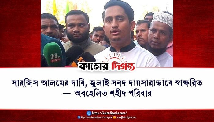 জুলাই সনদকে “শুধু নামমাত্র স্বাক্ষর” মন্তব্য করে জাতীয় নাগরিক পার্টি (এনসিপি) উত্তরাঞ্চলের মুখ্য সংগঠক সারজিস আলম বলেছেন, সরকার জনগণের প্রত্যাশিত পরিবর্তন নয়, বরং নিজেদের নিরাপত্তা নিয়েই ব্যস্ত। তিনি অভিযোগ করেন, সনদে রাষ্ট্র ও জাতির নিরাপত্তা সম্পর্কিত গুরুত্বপূর্ণ দিকগুলো অস্পষ্ট রেখে দায়সারাভাবে এই স্বাক্ষর সম্পন্ন করা হয়েছে।
